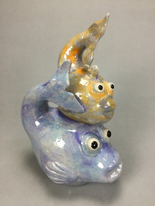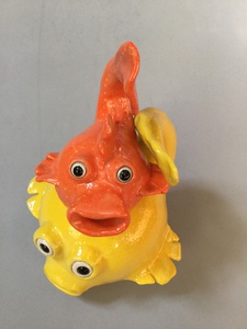 2019Een kleurrijk vissenduo met contrasterende kleuren, in kleurvlakken.